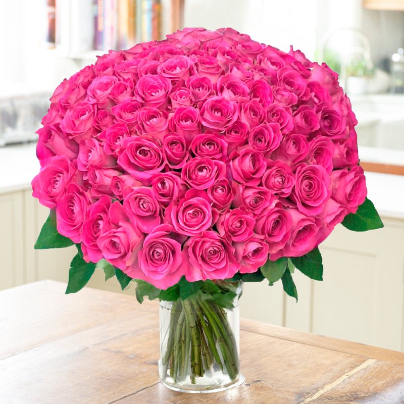 Make their day special with this pretty bouquet of 100 pink sweetheart roses.Please note that the shade of pink may vary.