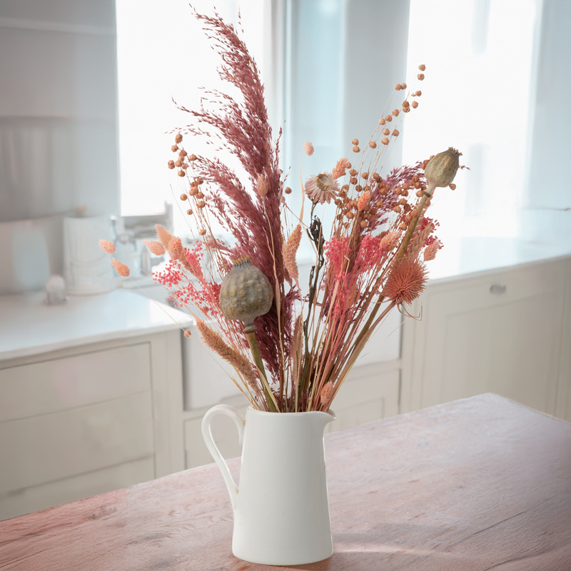 Send a long-lasting treat with this bohemian arrangement of dried flowers and grasses in stylish rose gold, dusky pink, and natural tones.