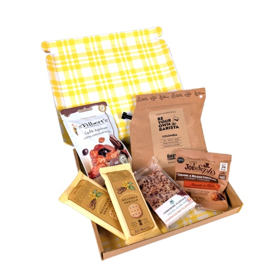 For those who live for their next cup, the Penny Post Coffee Lover brings together rich coffee flavours with indulgent treats. From Colombian coffee to chocolate popcorn and a hot chocolate spoon, it's a delicious celebration for caffeine enthusiasts. This hamper contains 6 items: Cappuccino Flapjack 95g Colombia Coffeebrewer (100% Arabica Ground Coffee) Espresso Nut Mix 75g Madagascar Bourbon Vanilla Twin Pack Biscuits 25g Popcorn with Caramel & Belgian Chocolate 7g Limited Edition Hot Choc Spoon 40g Packed in a branded letterbox friendly gift box.