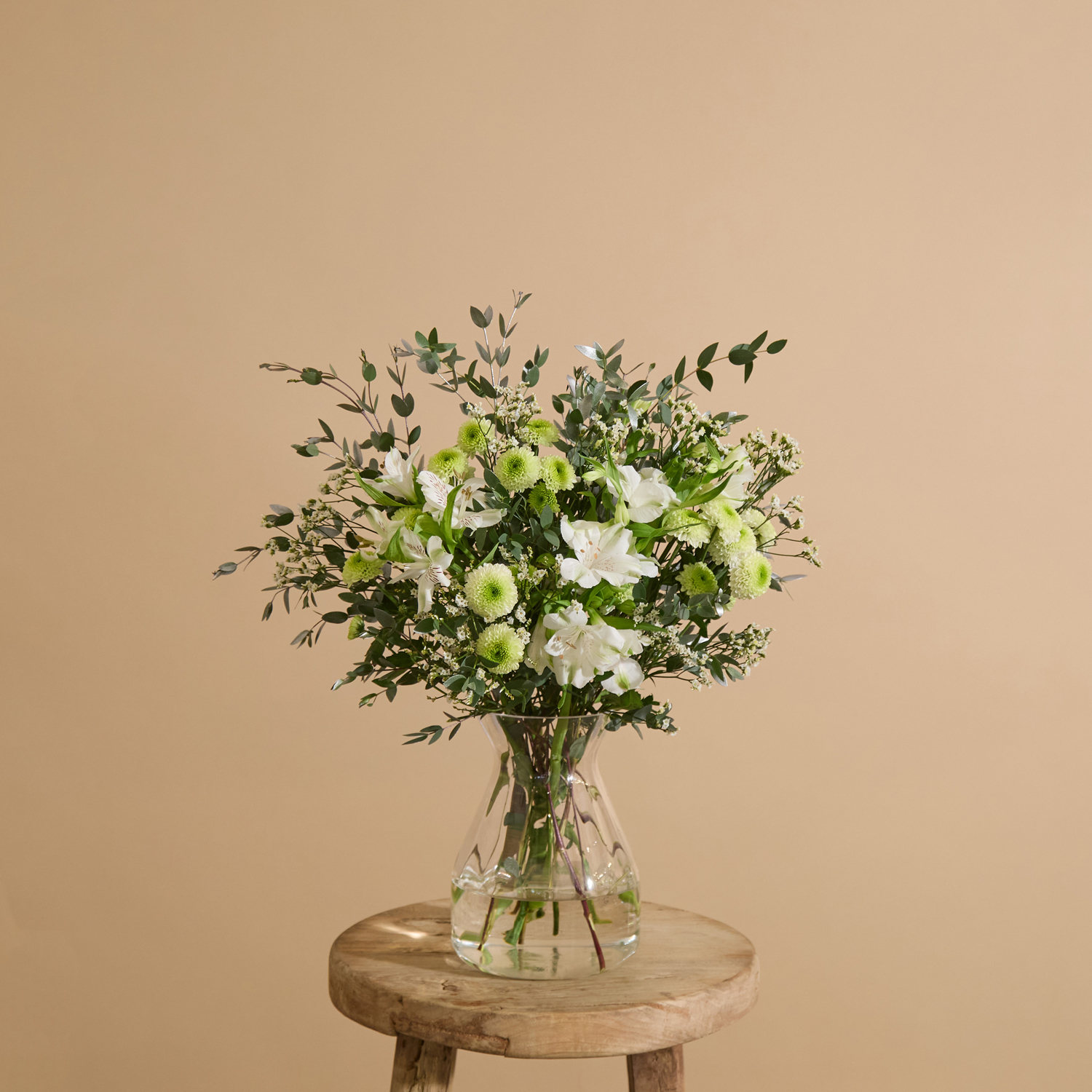 Beautiful, hand-picked, unique and unusual fresh flowers delivered direct tomorrow (next day) or set date (free). We even deliver on Sunday. Order before 8pm for your flowers to arrive tomorrow, or choose a set date. Available as as a subscription gift too. Amazing 5* reviews and 1,000s of happy customers. Embrace quiet winter days with subtle elegance. These dainty stems will bring a serene feel to all your December moments, from gift wrapping and card writing to cosy nights with friends. We've added bright white alstroemeria to fragrant-favourite eucalyptus for a festive yet modern feel.