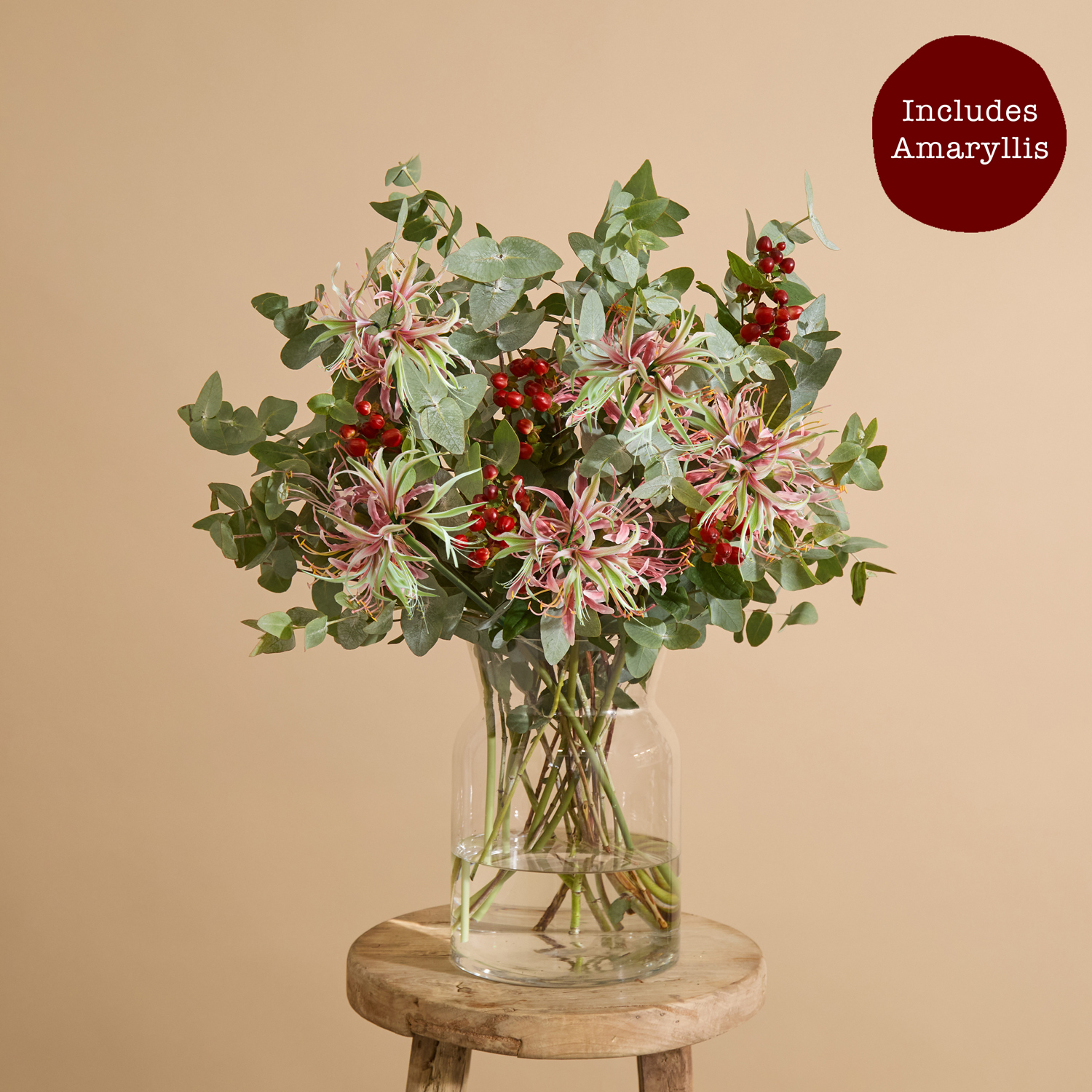 Beautiful, hand-picked, unique and unusual fresh flowers delivered direct tomorrow (next day) or set date (free). We even deliver on Sunday. Order before 8pm for your flowers to arrive tomorrow, or choose a set date. Available as as a subscription gift too. Amazing 5* reviews and 1,000s of happy customers. A flicker in the stillness, Fireside Glow captures the quiet warmth of a winter night. Peach roses and lilies smolder alongside santini and wisps of eucalyptus. Like a moth drawn to fading firelight, this bunch glows with quiet allure.
