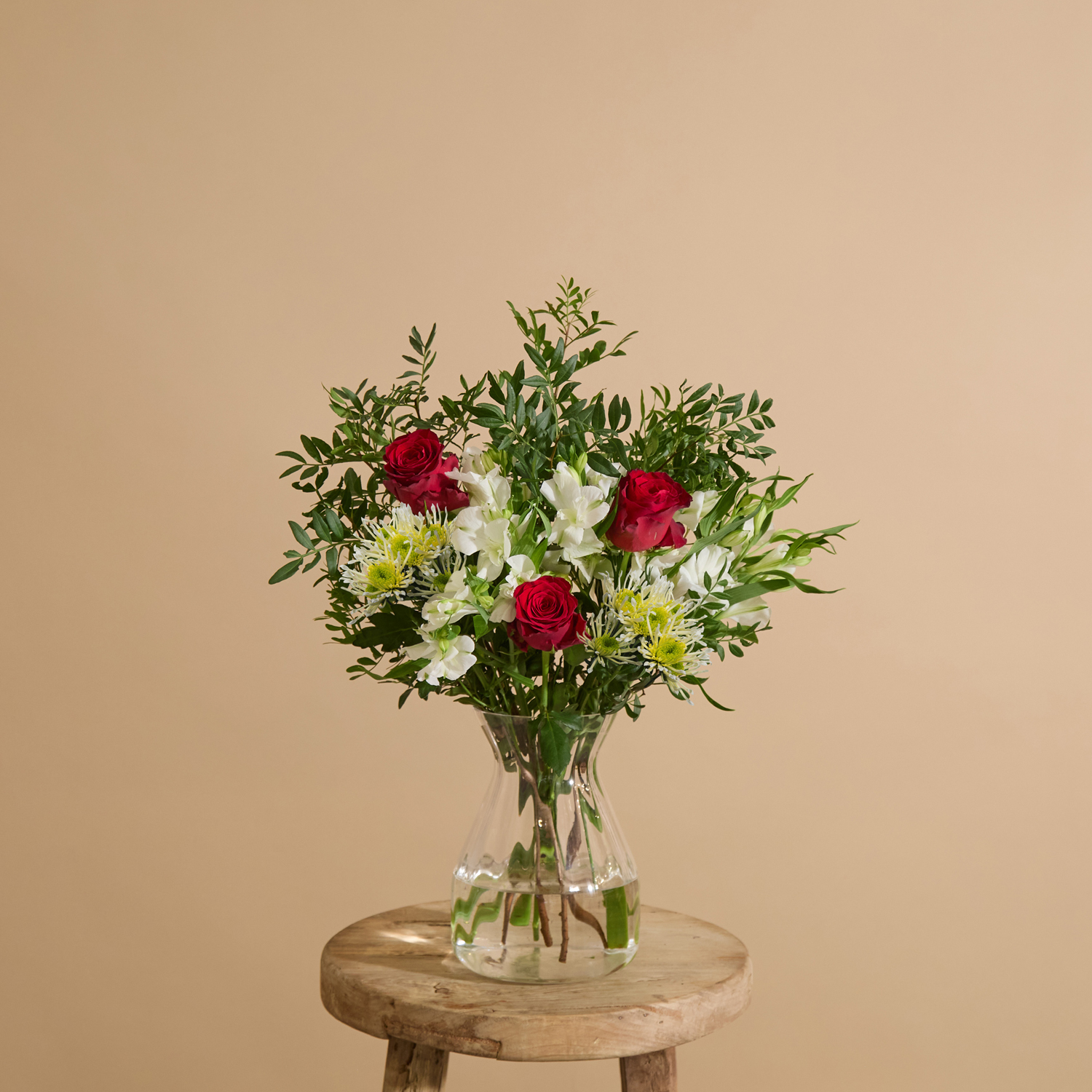 Beautiful, hand-picked, unique and unusual fresh flowers delivered direct tomorrow (next day) or set date (free). We even deliver on Sunday. Order before 8pm for your flowers to arrive tomorrow, or choose a set date. Available as as a subscription gift too. Amazing 5* reviews and 1,000s of happy customers. An ode to the art of festive celebrations. Featuring deep red roses and alstroemeria with glossy green pistache, each flower sets the mood for a season of togetherness and joy. Make yours the backdrop to nights of laughter, dancing and present-giving.