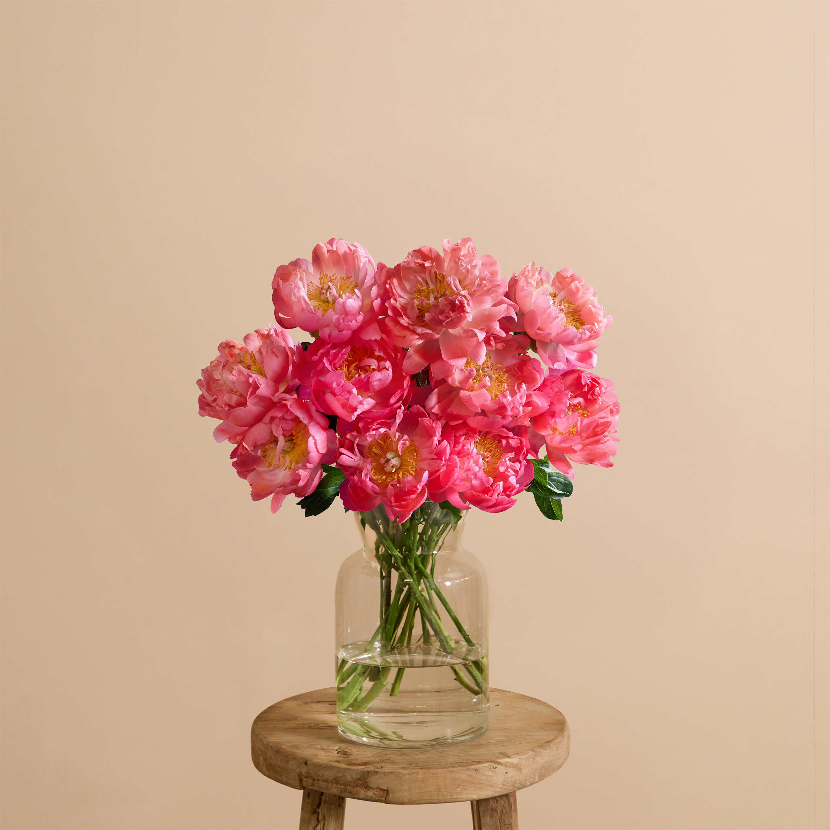 Beautiful, hand-picked, unique and unusual fresh flowers delivered direct tomorrow (next day) or set date (free). We even deliver on Sunday. Order before 8pm for your flowers to arrive tomorrow, or choose a set date. Available as as a subscription gift too. Amazing 5* reviews and 1,000s of happy customers. Layered, ruffled, and full of colour-changing drama, this 10-stem spotlight features exclusively Coral Charm peonies. The season’s hero, these large blooms explode in a gradient of sumptuous hues, from bright salmon-pink into warm orange and yellow against dark green leaves. Peonies have the reputation of being a bit fussy but with our expert floristry tips, they’ll reward you with layer after layer of colour-shifting drama to enjoy for up to 7 days.