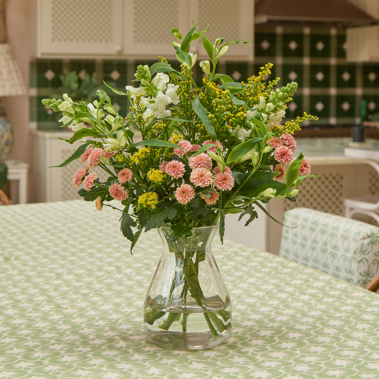 Perfect gift for Mother's Day | Beautiful, hand-picked, unique and unusual fresh flowers delivered direct tomorrow (next day) or set date (free). We even deliver on Sunday. Order before 8pm for your flowers to arrive tomorrow, or choose a set date. Available as as a subscription gift too. Amazing 5* reviews and 1,000s of happy customers. This arrangement is a delicious pairing of golden hues, like slightly melted butter and apricot marmalade on a fresh slice of toast. Alstroemeria, santinis, and snapdragons add peachy and yellow swirls through a nest of sunny solidago. Gentle warmth, simple pleasures, and a taste that takes you back to the days of your childhood.